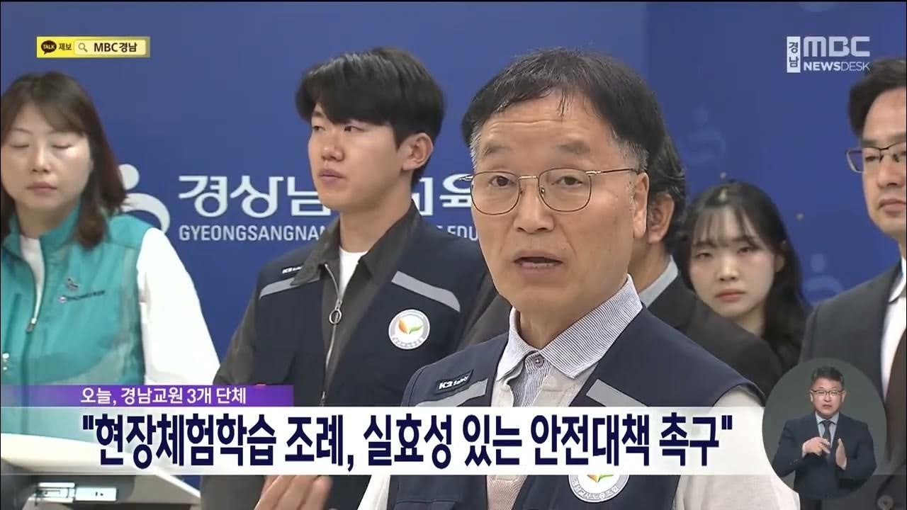 1. MBC 경남 (뉴스데스크) [교원3단체, 현장체험학습 안전공백 실질 대책 요구] https://www.youtube.com/watch?v=MYEeqkQkeMQ [00:10]